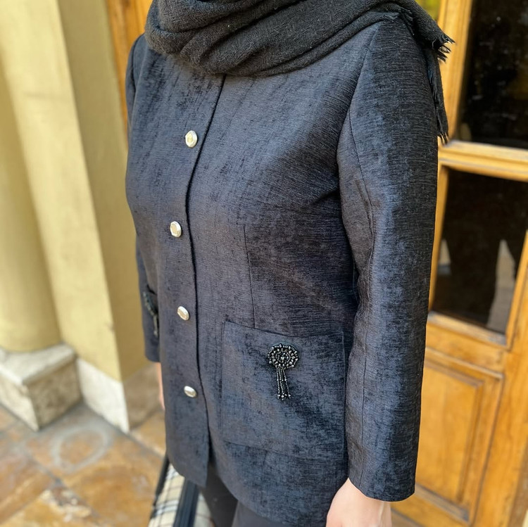 کت چهارفصل مجلسی کت چهار فصل با گل دوزی دو جیبش کد:۱۰۶۹ قد کت: ۷۰ سانت قد کار قابل تغییر جنس پارچه:شنل ترک قابل در سایز دلخواه و قد دلخواه الگو ترک ودوخت مزونی پس از ثبت 5روز کاری دیگر ارسال میگردد.