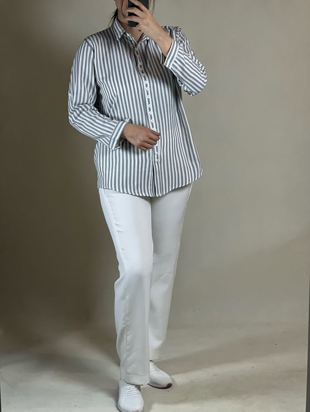 شومیز و شلوار لونا کد:۱۱۶۰ این شومیز راه راه هم با شلوار میتونین بدین هم میتونین به صورت جدا بدین شومیز یه لباس خیلی کاربردیه اصلا فصل نداره تابستون تنها میپوشی زمستون زیر پالتو ست میشه تازه میتونی یه استایل رسمی هم باهاش داشته باشی راستی سه تا دکمه ام پست شومیز داره میخوای عکسشو ببینی بیا استوری